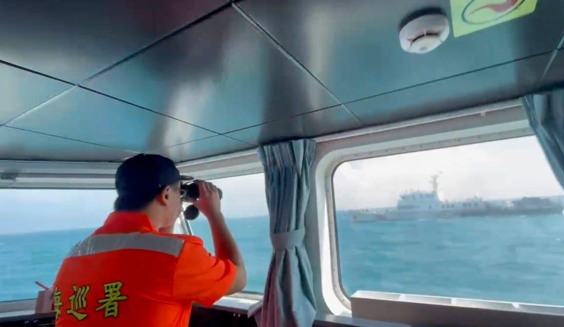 GeopoliticsBeijing bullies Taiwan with military exercisesThe Taiwanese government said it would “prepare for war without asking for war”.Caitlin AllenOct 14, 2024∙ PaidShareA member of the Taiwan Coast Guard monitors a China Coast Guard boat as it passes near the coast of Matsu islands, Taiwan (via AP/ Alamy)Taiwan has condemned Beijing’s "irrational and provocative beh…This post is for paid subscribersSubscribeAlready a paid subscriber? Sign inPreviousNext